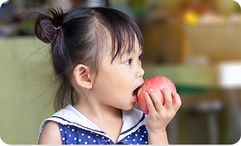 いつもお口がぽかんと開いていたり、無意識に舌が出ているお子さんは、鼻ではなく口で息をしていることがあります。口で呼吸することが習慣になっていると、食べ物を噛んで飲み込むという一連の動作や歯並びの悪化につながる可能性もあります。
